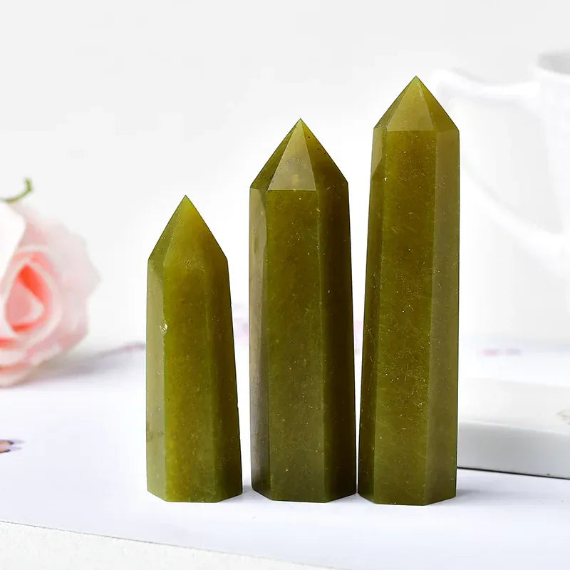 1pc 50-80mm Natural Green Afghan Jade Crystal Point Healing Hexagonal Obelisk Wand Crystal Ornament For Home Decoration