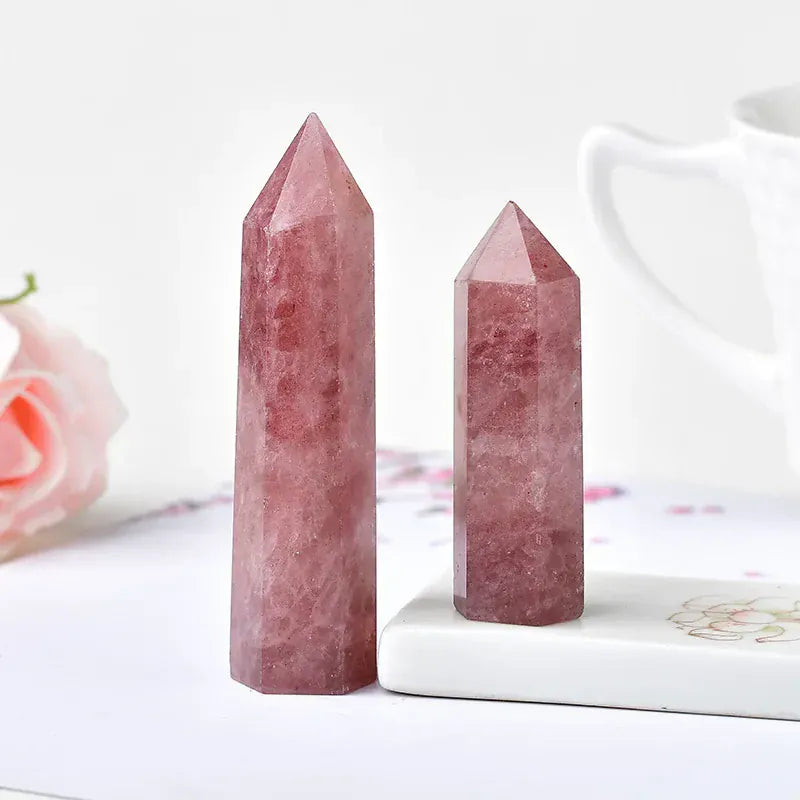 Natural Crystal Point Strawberry Crystal Healing Stone Obelisk Quartz Wand Tower Ornament for Home Decor Energy Stone Pyramid