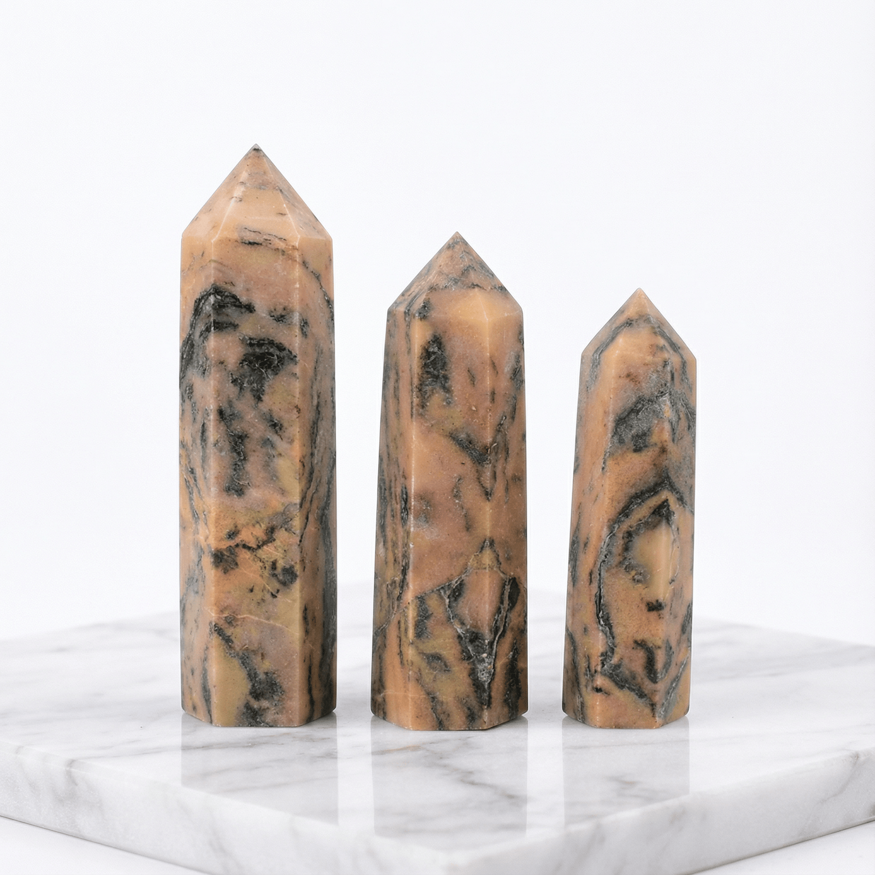Brighten your space with this polished Yellow Banded Calcite Tower. Featuring warm layers of honey-yellow and creamy white, this natural stone point (often called "Pineapple Calcite") brings a sunny, cheerful aesthetic to any room. Each 6-sided obelisk is unique, showcasing the stone's natural sedimentary banding. Perfect for use as a centerpiece, paperweight, or meditation focus.