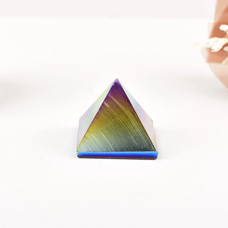1PC Natural Clear Quartz Electroplating Aura Pyramid Crystal Healing Stone Energy Tower Simple Ornaments For Home Decoration