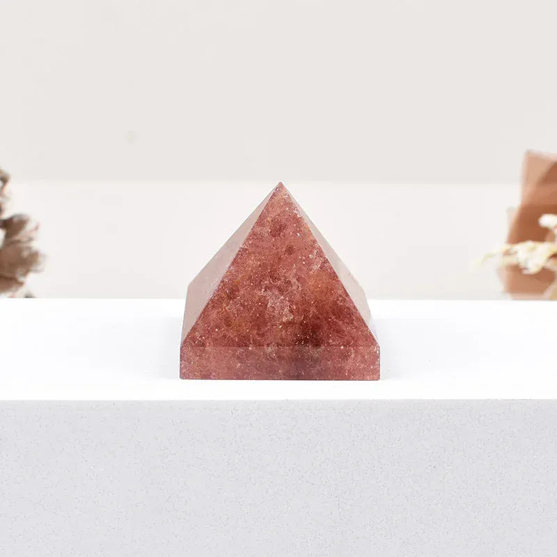 1PC Natural Strawberry Quartz Polished Crystal Pyramid Healing Stone Energy Tower Crystal Simple Ornaments Home Decoration