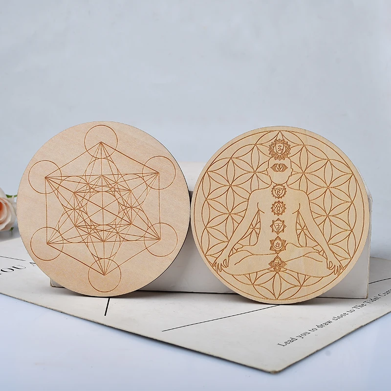 1PC 10Cm For Seven Chakra Healing Stone Seven Star Array Reiki Wood Plate Cube Yoga Chakra Home Decor Diy Gift