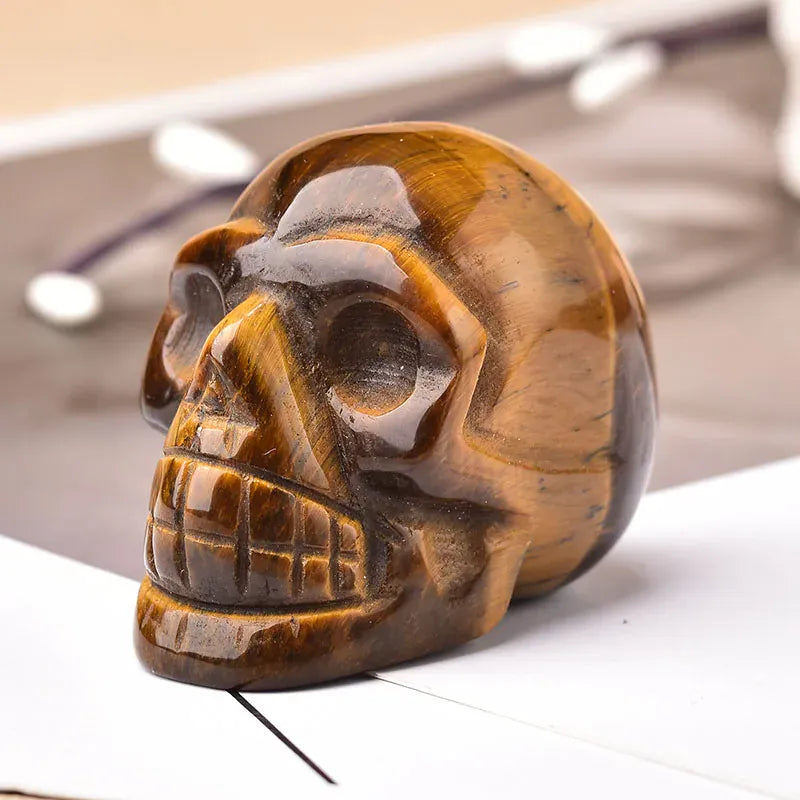 2inch Natural Gemstone Skull Amethyst Tigers Eye Crystal Rose Quartz Wicca Feng Shui Healing Stone Ornaments Figurine Home Deco