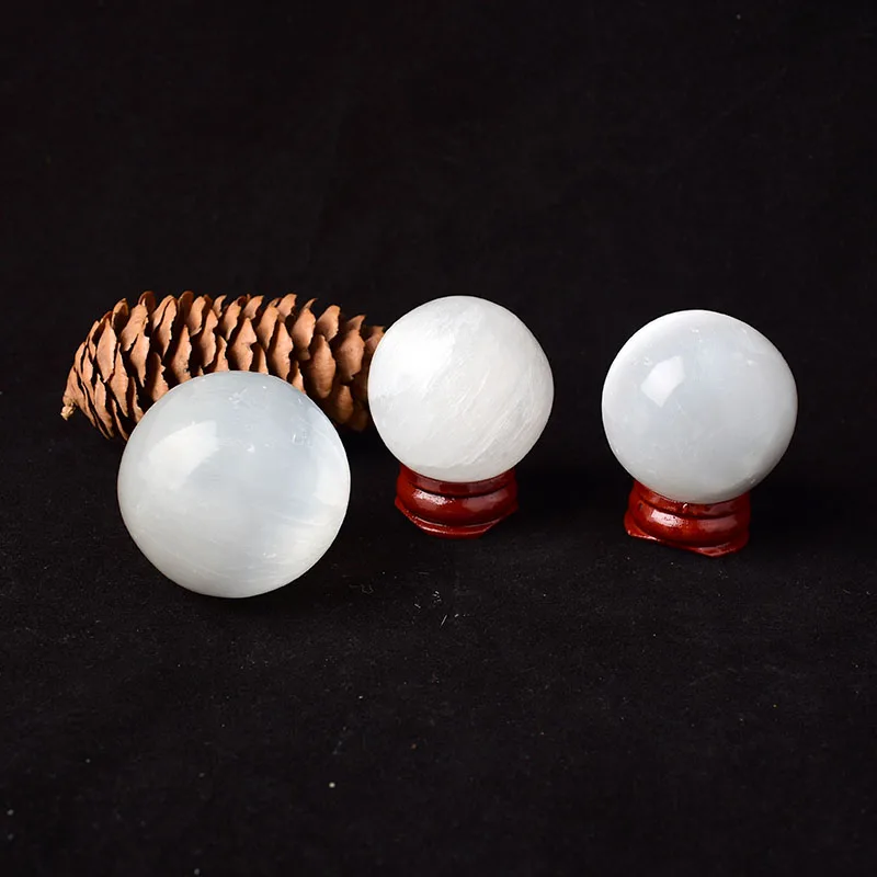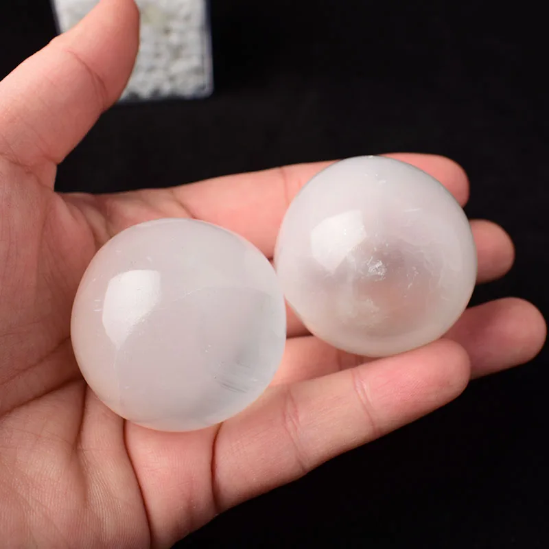 4cm Natural Crystal Selenite Polished Ball Reiki Healing Stone Home Decoration Energy Gemstone Ball Mineral Meditation Ornament