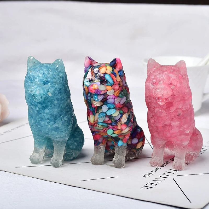 Natural Crystal Gravel Silica Gel Colourful Animal Dog Figurine Crafts Souvenir Home Decor Specimen Reiki Energy Stone Gift