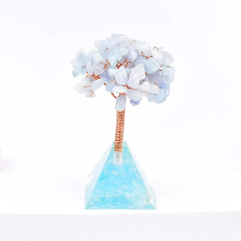 Natural Crystal Stone Resin Craftwork Pyramid Tree Specimen Agate Reiki Healing Home Decoration Ornaments Lucky Tree DIY Gift