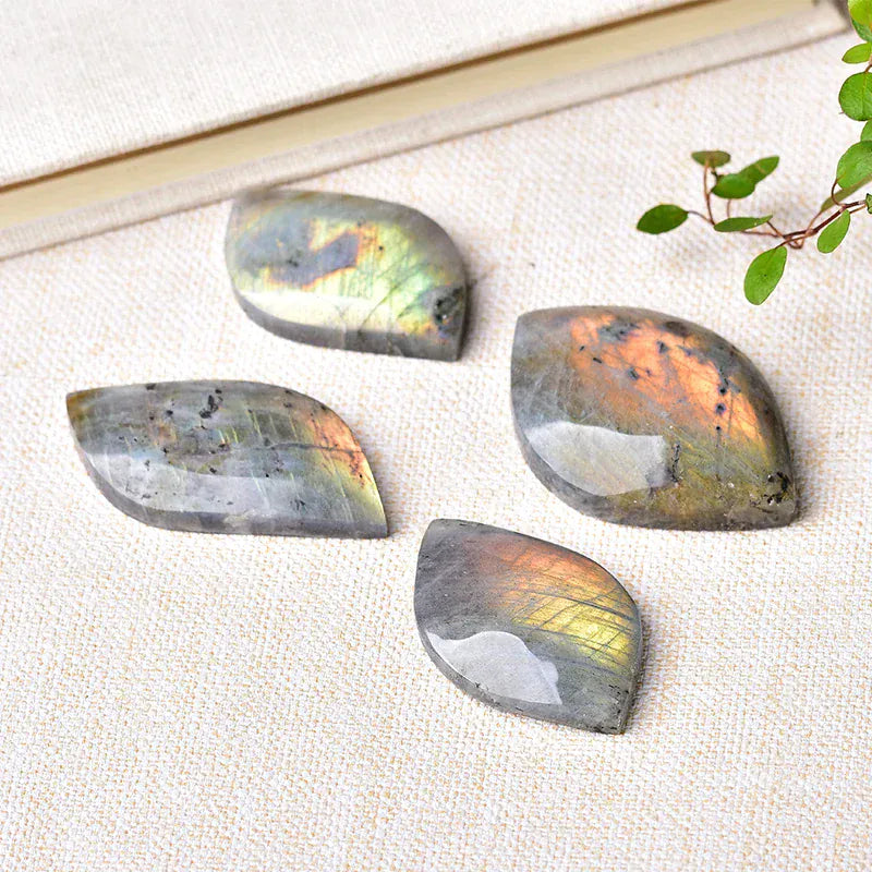 Natural Labradorite Leaf Shape Blue Purple Yellow Mineral Ornaments Energy Healing Stone DIY Jewelry Reiki Home Decoration