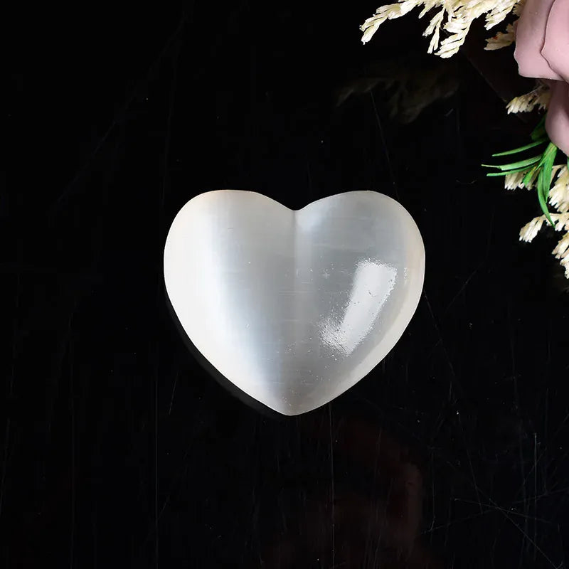 Natural Selenite Heart Shaped Hand Carved Polished Love Crystal Reiki Healing Stone Souvenir Home Decoration Collectible Gift