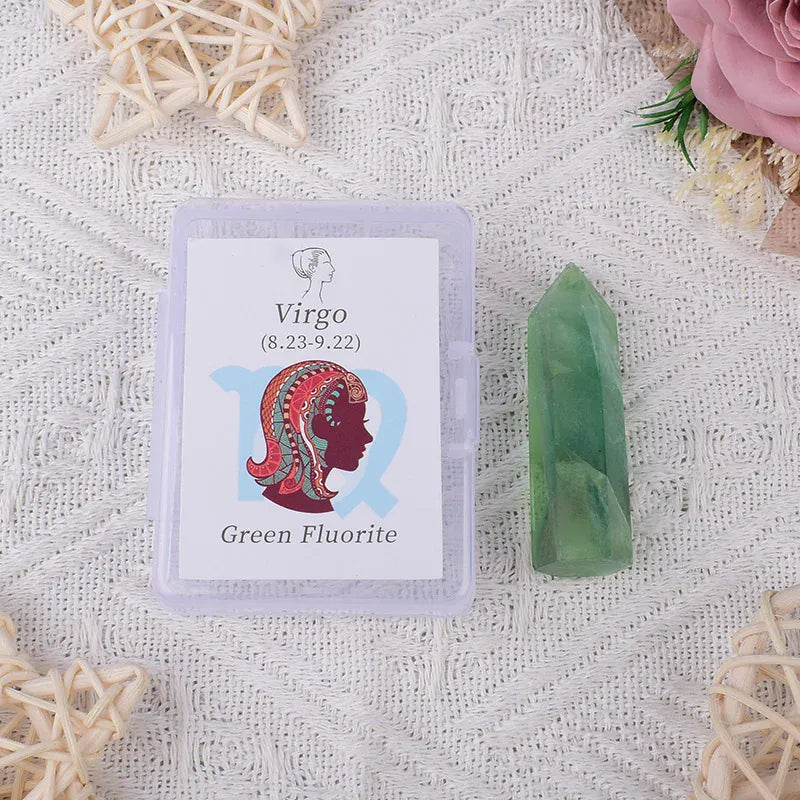 12 Constellations Natural Amethyst Rose Quartz Citrine Ecliptic Style Crystal Wand Leo Aries TaurusGem Tower For Home Decoration